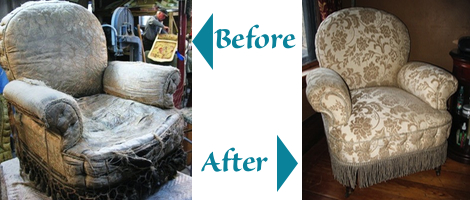 The restoration of antique upholstered furniture wood frames, then reupholstering with original fillings and springs is just one of my specialties.